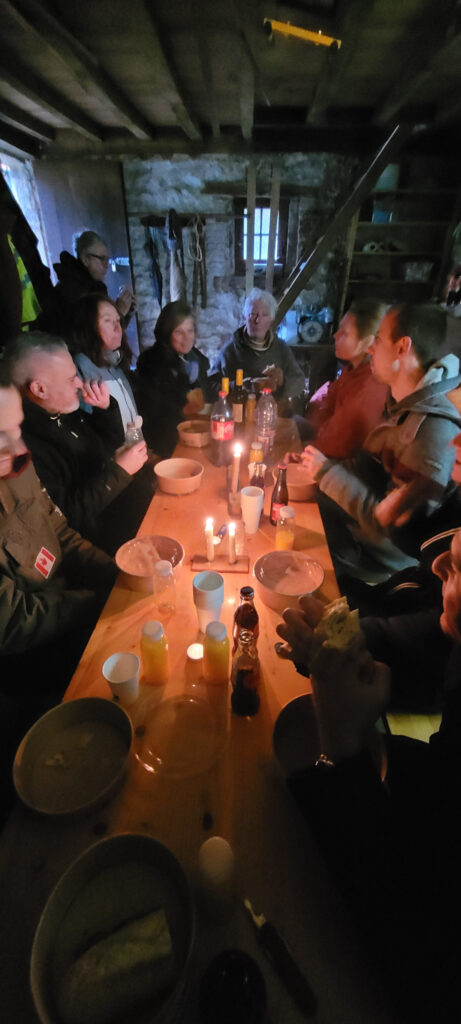 Le casse-croûte a eu lieu dans le fournil à la lueur de chandelles tel un repas de fête, tout le monde était ravi.
