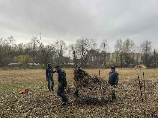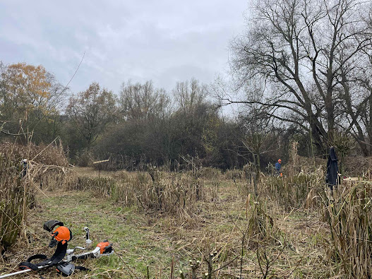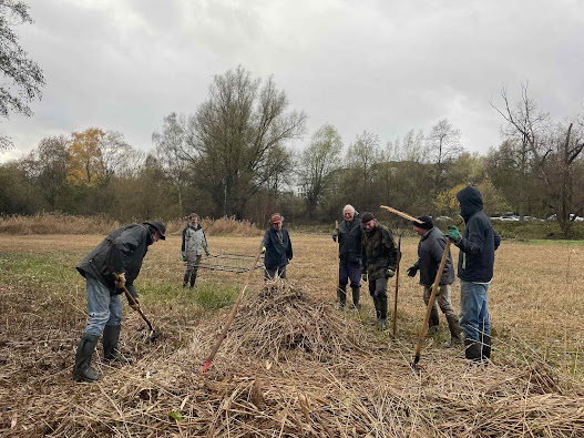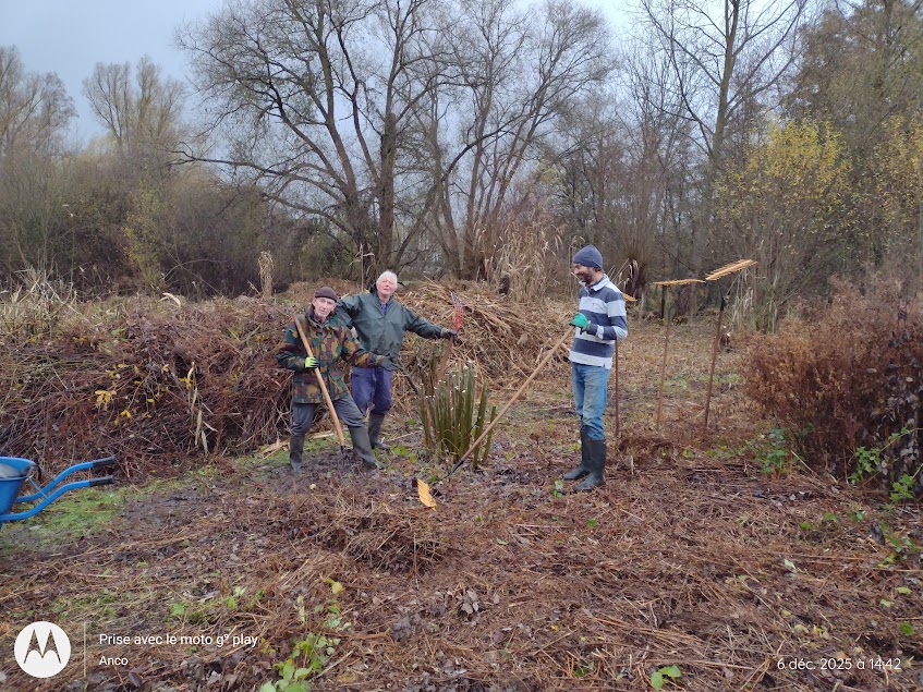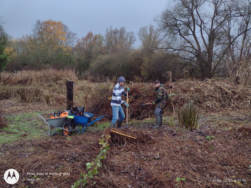 Grosse — très grosse ! — journée de gestion mensuelle à l’Hof ter Musschen ce samedi. Vingt personnes — bénévoles du CEBE et membres du « groupe des bagueurs de Didier Pansaers » — ont mis la main à la pâte pour tailler les saules, effectuer la dernière fauche de la saison et évacuer les déchets de celle-ci.