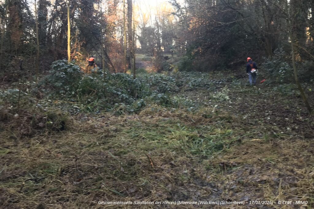 L’après-midi, nous avons taillé de nombreux arbustes poussant dans la prairie du Moeraske, près de l’entrée de la rue Carli, le long du grillage de la SNCB. Nous aurions certes pu terminer le travail au Walckiers, mais nous avons préféré une activité ne nécessitant pas l’usage constant de grosses tronçonneuses bruyantes. Histoire d’entendre chanter un premier Accenteur mouchet, quoi ! »