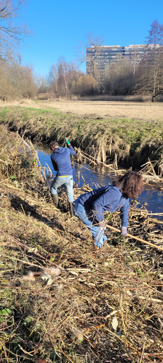 Les résultats sont d’ailleurs très visibles : nous avons entretenu les abords de la « Mare UCL » (fauche et ramassage des détritus abandonnés aux alentours et dans celle-ci) et fauché les roseaux poussant dans la Woluwe, à l’endroit où Bruxelles Environnement avait dû intervenir début 2024 et ce afin d’éviter la formation d’un nouveau « bouchon ».