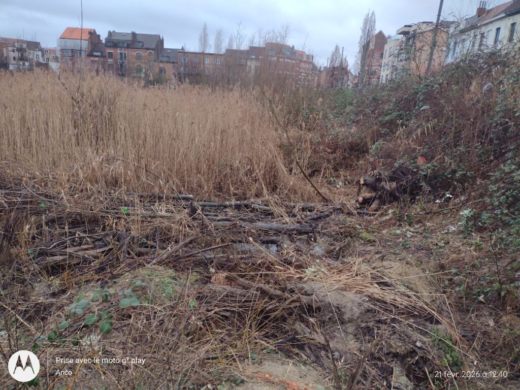 le BIESTEBROECK, est un site anciennement industriel où la Nature s’est ré-installée qu’un collectif cherche à préserver en y développant de multiples activités (nettoyage, inventaires biologiques, petites visites avec des groupes de jeunes). Le proprio veut construire, la Commune se tâte, le collectif veut sauver. Pratiquement, le collectif multiplie les actions sur le terrain avec un proprio qui laisse faire (ceci ne veut pas dire qu’il soutienne le projet alternatif, mais simplement qu’il attend pour présenter un nouveau projet et qu’il compte sur un essoufflement du milieu associatif). Ayant eu des contacts, lors d’une conférence, avec le collectif, MIMO, ANCO et SERO ont pensé qu’un petit coup de main qu’on pourrait leur donner par une journée de gestion avec notre matos…pourrait les renforcer, car, s’ils souhaitent améliorer la qualité biologique des lieux, ils n’en ont ni les connaissances scientifiques, ni le matériel pour le faire. On propose donc une journée de gestion CEBE/collectif local avec notre matos…mais nous-mêmes pour utiliser tronçonneuses et débroussailleuses.