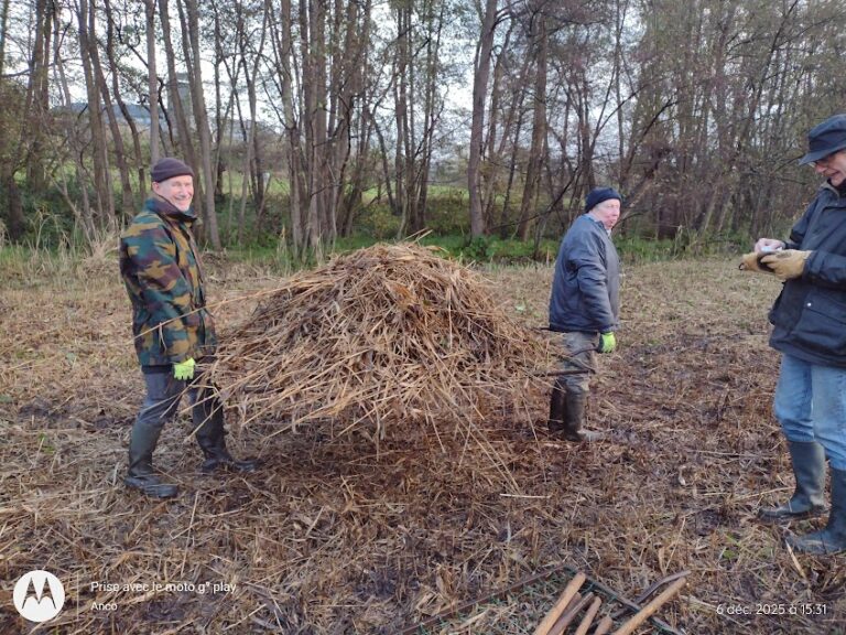 En cette fin d’année, nous n’avons pas — doux euphémisme — chômé ! Janvier 2026, nous verra de nouveau au même endroit : il restera à débiter un tronc, à finaliser le passage dans les chemins encore non traités et à intervenir dans la prairie humide. Janvier 2026… le moment idéal pour vous joindre à nous et venir nous prêter main-forte sur le terrain ! » MERCI à Audrey, Catherine, Gwenaëlle, André, Dimitri, Frédéric, Michel et Raphael gestionnaires de ce jour …