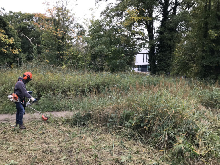 Les congés faisant, nous étions une équipe (5 personnes) plus réduites que ces derniers temps pour assurer la journée de gestion mensuelle au Moeraske. Comme nous sommes parfaitement dans les temps pour respecter le plan de gestion du site, nous avions prévu une journée plus légère avec au programme : réparation de certains de nos outils et intervention (fauchage) au niveau des Renouées du Japon qui colonisent la « butte » du Moeraske. Hélas, un passage sur les lieux 48 heures auparavant, nous incita à compléter ce « plan de bataille ». Il y avait lieu d’intervenir à la suite …