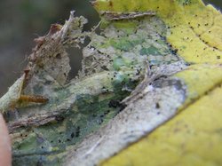 PROSTIGMATA Phyllocoptruta coryli (Hazelaarkatjesmijt) ≈ Contarinia coryli (larve?) ⌂ 2 |