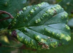 MH5/2009 Acarien qui produit des galles feutrées jaunes ou brunes sur la face inférieure des feuilles de Juglans regia (Noyer royal - Okkernoot) - Juglandaceae.